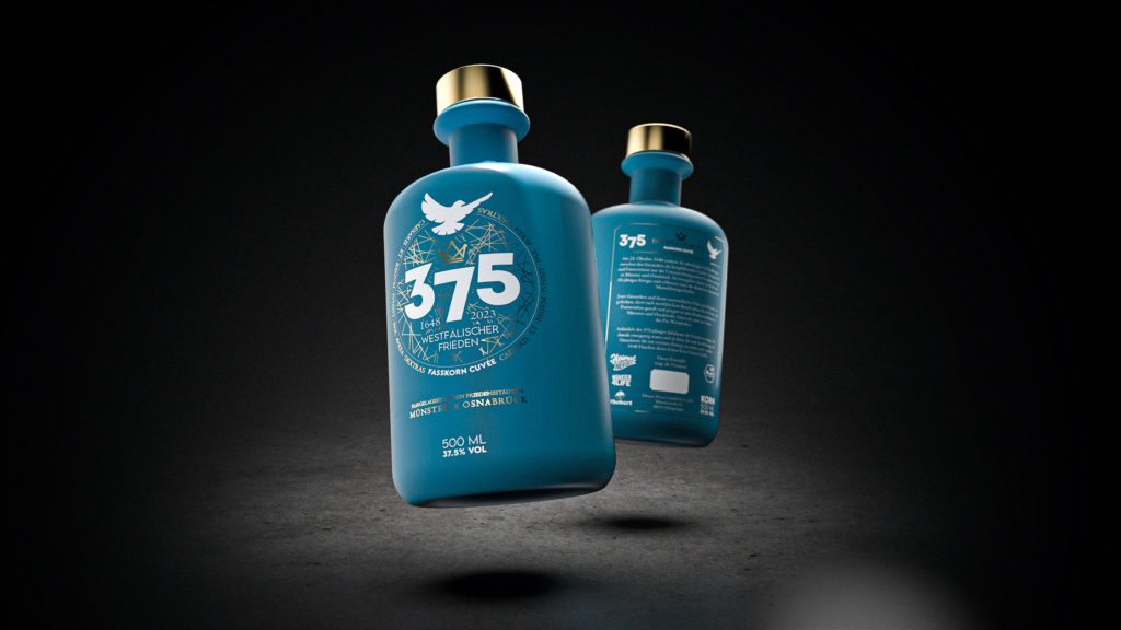 Das Design der Flasche ist inspiriert durch die historische Friedensfahne, deren Replik heute im Rathaus zu Münster öffentlich ausgestellt ist. Das stark verwitterte Original, welches 1648 zur Verkündung des Friedensschlusses präsentiert wurde, ruht heute sicher verwahrt im Münsteraner Stadtarchiv Jede einzelne Flasche ist von Hand nummeriert und somit ein Unikat. Sichere dir eines der 1648 Exemplare bei uns im kleinen Laden MeinMünster, alter Fischmarkt 22 oder in unserem Onlineshop und sichere dir ein Stück westfälischer und auch europäischer Geschichte.
